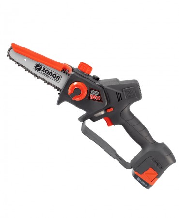 Αλυσοπρίονο mini μπαταρίας με μικρό βάρος της Ιταλικής Zanon. Εύκολο στην χρήση, χαμηλό βάρος με αυτόματη αντλία λίπανσης και μήκος λάμας 120mm. Κατάλληλο για μικρά κλαδέματα.