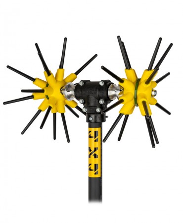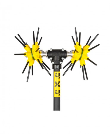 Ελαιοραβδιστικό με κεφαλή τύπου αχινός από τον κατασκευαστή Αγγελής, όπου η κεφαλή αυτή είναι κατάλληλη για τις περισσότερες ποικιλίες της ελιάς, καθώς έχει εύκολη διείσδυση μέσα στο δέντρο χωρίς να περιπλέκεται στα κλαδιά και μπορεί να προκαλέσει ελάχιστη φυλλόπτωση.