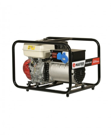 Βενζινοκίνητο μονοφασικό ηλεκτροπαραγωγό ζεύγος MASTER. Με υψηλής απόδοσης εναλλάκτη Ιταλίας, σε ελληνικής κατασκευής μεταλλική βάση με ηλεκτροστατική βαφή και αντιδόνηση. Με βολτόμετρο, ασφάλειες προστασίας από υπερφόρτωση και πολλαπλές εξόδους παροχής ρεύματος. Διατίθεται κιτ μετατροπής σε τροχήλατο ως αξεσουάρ.