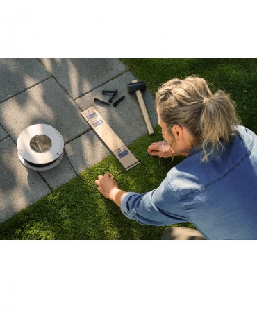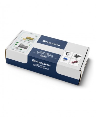 Κιτ εγκατάστασης που περιλαμβάνει καλώδιο οριοθέτησης, πλαστικά πασσαλάκια, συνδέσμους βάσης φόρτισης και συνδέσμους καλωδίου, κατάλληλα για τον κήπο σας.