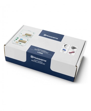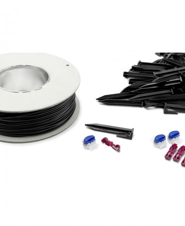 Κιτ εγκατάστασης που περιλαμβάνει καλώδιο οριοθέτησης, πλαστικά πασσαλάκια, συνδέσμους βάσης φόρτισης και συνδέσμους καλωδίου, κατάλληλα για τον κήπο σας.