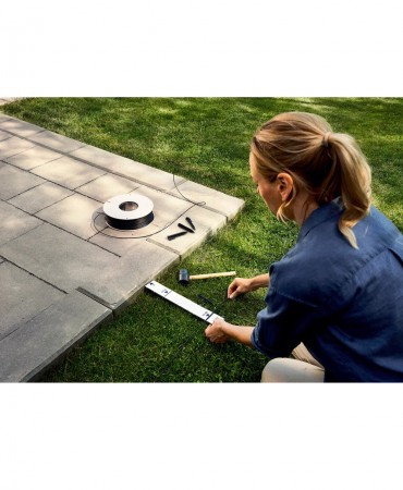 Κιτ εγκατάστασης που περιλαμβάνει καλώδιο οριοθέτησης, πλαστικά πασσαλάκια, συνδέσμους βάσης φόρτισης και συνδέσμους καλωδίου, κατάλληλα για τον κήπο σας.