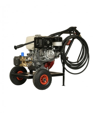Βενζινοκίνητο πλυστικό συγκρότημα MASTER. Με υψηλής απόδοσης και αξιοπιστίας επαγγελματική αντλία ANNOVI REVERBERI, σε ελληνικής κατασκευής μεταλλική βάση με ηλεκτροστατική βαφή και ρόδες. Η συσκευασία περιλαμβάνει φίλτρο νερού, μανόμετρο, σωλήνα υψηλής πίεσης 10m, κάννη τύπου βεντάλια και πιστόλι. Διατίθεται πληθώρα αξεσουάρ, όπως κάννη Turbo, κιτ αμμοβολής και σετ απόφραξης
