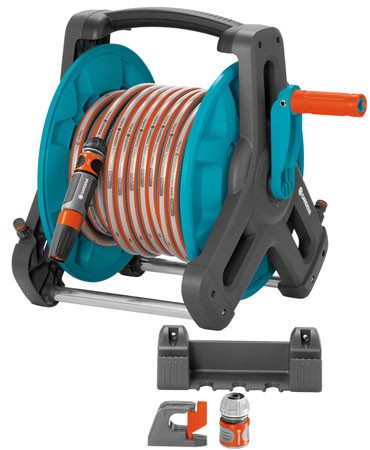 Ευέλικτη λύση αποθήκευσης είτε στον τοίχο, είτε για χρήση ως φορητό καρούλι. Ενδείκνυται για μικρούς ή μεσαίους κήπους. Έχει σπαστή σύνδεση για το λάστιχο που αποτρέπει τη στρέβλωση του και διασφαλίζει την πλήρη ροή νερού σε κάθε περίπτωση.