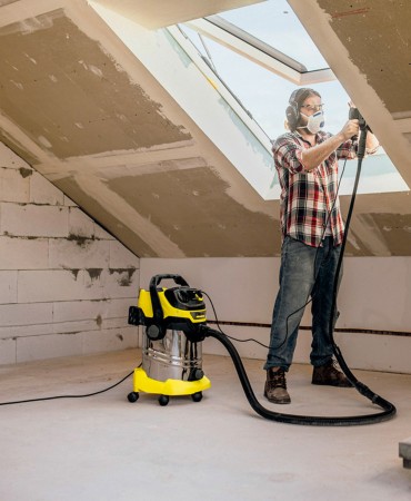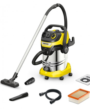 Εξαιρετικά ισχυρή αναρρόφηση και εξαιρετική ενεργειακή απόδοση, με κατανάλωση ενέργειας μόλις 1300 Watt: Η σκούπα υγρής και ξηρής αναρρόφησης WD 6 P S V-30/6/22/T διαθέτει κάδο από ανοξείδωτο ατσάλι 30 λίτρων, καλώδιο ρεύματος 6 μέτρων και σωλήνα αναρρόφησης μήκους 2,2 μέτρων. Ο κοχλίας αποστράγγισης μπορεί να χρησιμοποιηθεί για την εύκολη αποστράγγιση υγρών που έχουν απορροφηθεί με την σκούπα. Ηλεκτρικά εργαλεία όπως πριόνια ή τριβεία μπορούν να συνδεθούν μέσω της ενσωματωμένης πρίζας με αυτόματο διακόπτη on/off. Οι ρύποι που προκύπτουν αφαιρούνται αμέσως με αναρρόφηση. Ο περιστροφικός διακόπτης επιτρέπει στο χρήστη να ρυθμίζει την ισχύ αναρρόφησης για να καλύψει τις ανάγκες του. Το επίπεδο πτυχωτό φίλτρο μπορεί να αφαιρεθεί ανοίγοντας το κουτί του φίλτρου, χωρίς να χρειάζεται να έρθει σε επαφή ο χειριστής με τους ρύπους. Επιπλέον, το φίλτρο μπορεί να καθαριστεί αποτελεσματικά πατώντας το κουμπί καθαρισμού φίλτρου, αποκαθιστώντας έτσι την πλήρη ισχύ αναρρόφησης. Η λειτουργία φυσητήρα είναι ιδιαίτερα χρήσιμη όταν καθαρίζετε ευαίσθητα αντικείμενα. Η αφαιρούμενη λαβή με ηλεκτροστατική προστασία επιτρέπει την απευθείας σύνδεση των εξαρτημάτων στον εύκαμπτο σωλήνα αναρρόφησης, κάτι που είναι ιδιαίτερα ωφέλιμο όταν σκουπίζεις με ηλεκτρική σκούπα λεπτή σκόνη. Επιπλέον πλεονεκτήματα περιλαμβάνουν το γεγονός ότι ο εύκαμπτος σωλήνας αναρρόφησης μπορεί να αποθηκευτεί εύκολα αναρτώντας τον στην κεφαλή της συσκευής, καθώς και η θέση στάθμευσης για το ακροφύσιο δαπέδου.